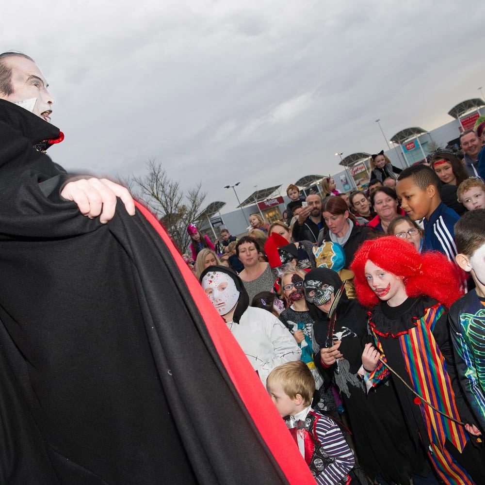 Count Dracula led large crowds of young children and their parents on a unique Spooks Parade to kick off the Halloween season at Drogheda Retail Park. Local kids went store to store on a spooky adventure, trick or treating staff and customers alike. And, not to be outdone, many of the staff of the stores were kitted out in their ghoulish best. We had an amazing turnout so thanks to everyone that came along!